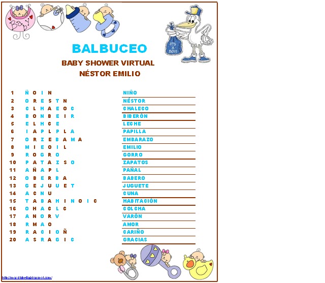 Juegos de Baby Shower para imprimir from www.desontis.com Check spelling or type a new query. Juegos para baby shower y sus respuestas. Maybe you would like to learn more about one of these? We did not find results for: